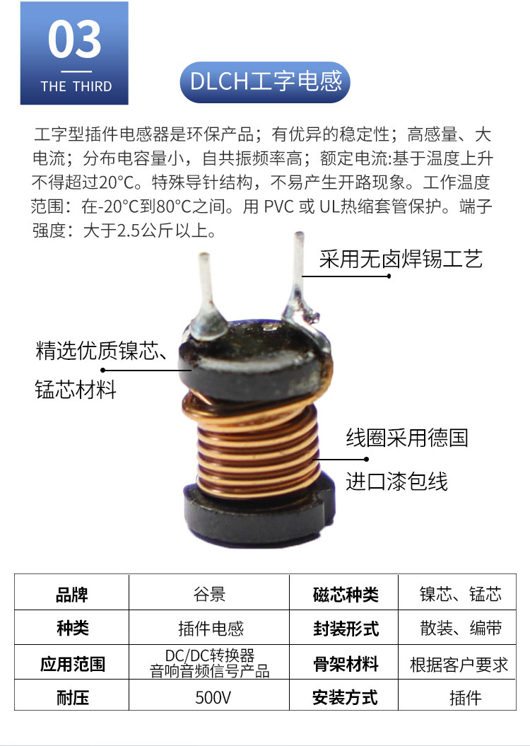 DLGBX工字电感:尺寸:可依客户要求定制;感量:1uH-100mH;精度:J级(±10%)、K级(±10%)、M级(±20%);电流量:1mA-20A(可定制);特点:小体积,高储能;适用于:电视、电源供应器、LED照明等。详情咨询:0512-65368862。工字电感,工字电感厂家,工字电感0406,工字电感0608,工字电感0810,工字电感0912,工字电感1010,工字电感1012,屏蔽工字电感,47uh工字电感,33uH工字电感,220uH工字电感,工字电感生产厂家,电感定制,屏蔽工字电感,杭州工字电感,南京工字电感