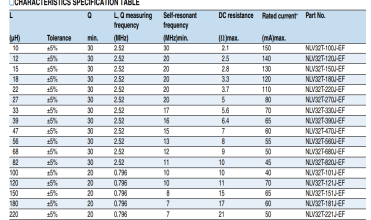 我们将NLV32T-221J贴片电感和GNL1210J221贴片电感做一下对比: